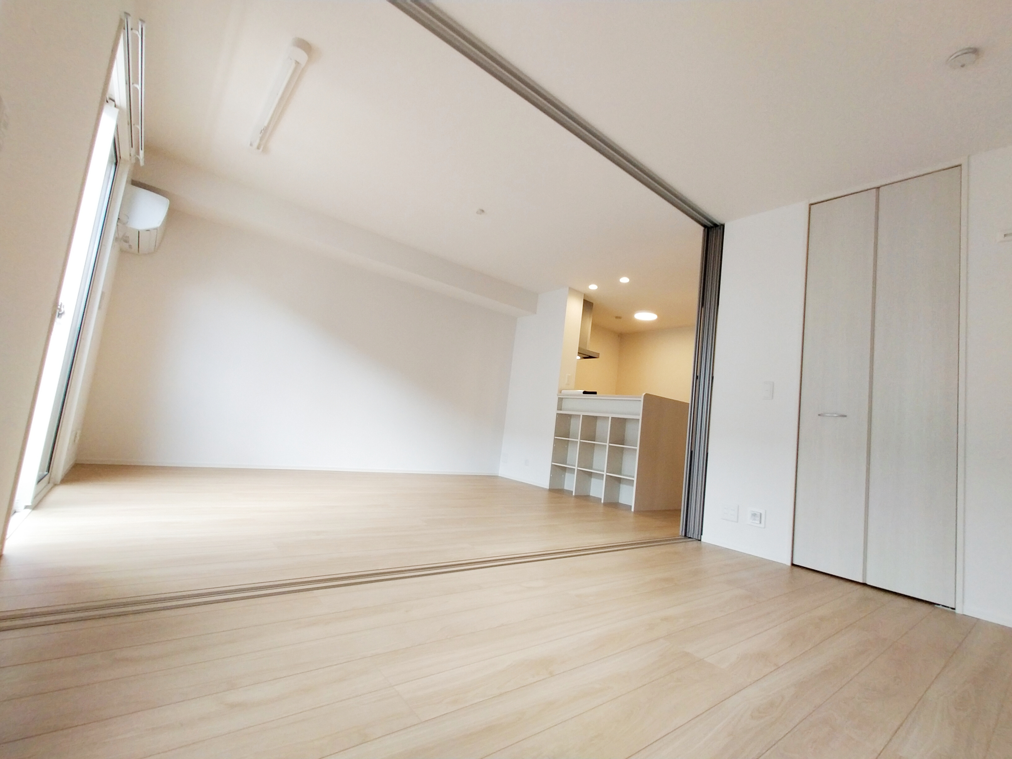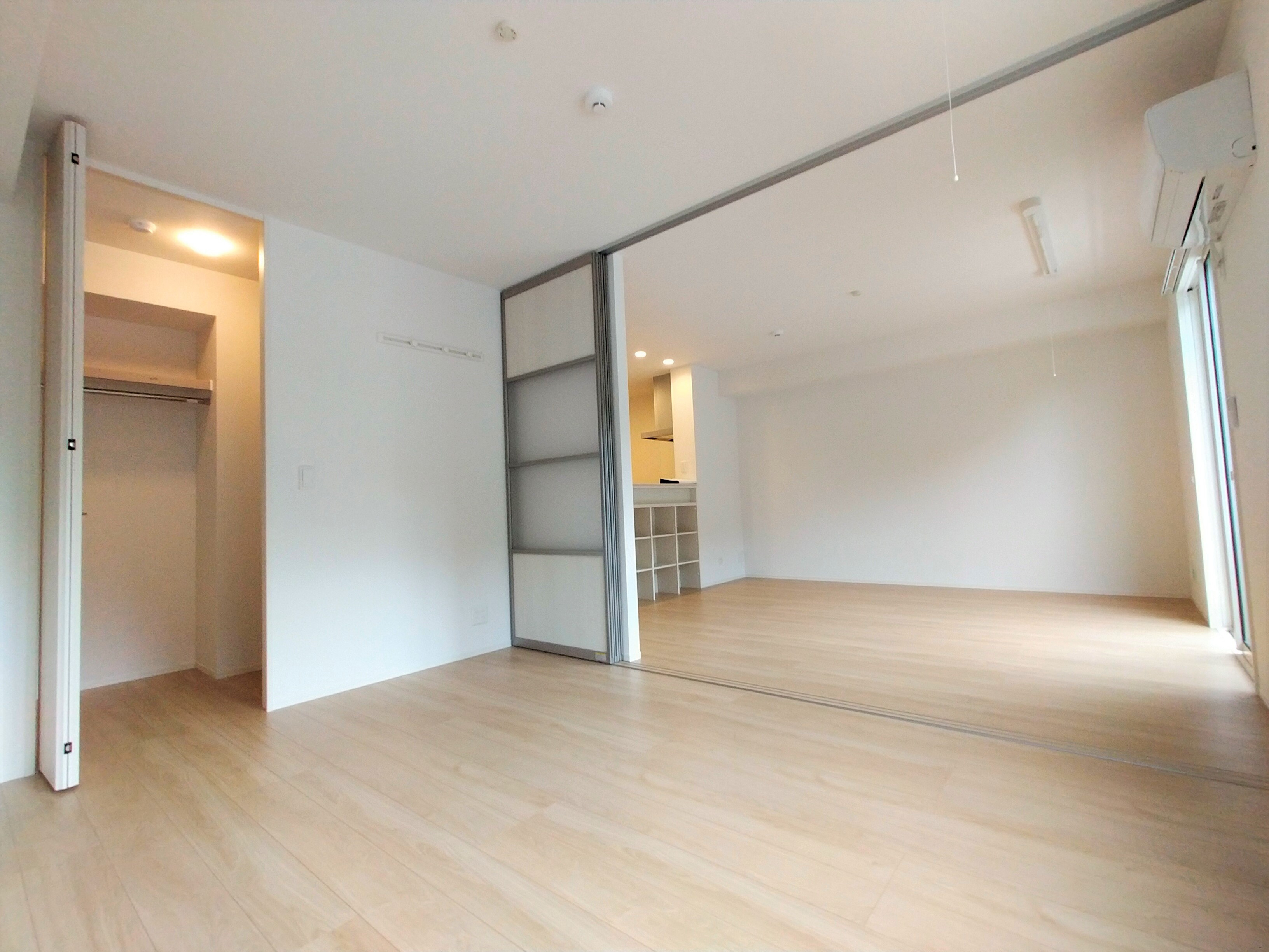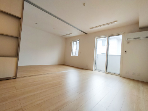 リビングから洋室までの写真。左に見えている仕切りで区切ってプライベートな空間としても、広い1室としても使用できます。